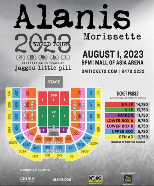 Alanis Morissette performed a two-night concert in Manila, Philippines, at the Mall of Asia Arena on August 1st and 2nd, 2023, as part of her "Jagged Little Pill" 25th anniversary tour. The concert was a celebration of her iconic album and a nostalgic trip back to the 90s for many fans.