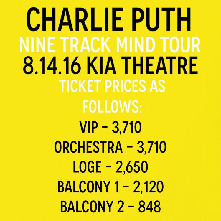 CHARLIE PUTH NINE TRACK MIND TOUR
