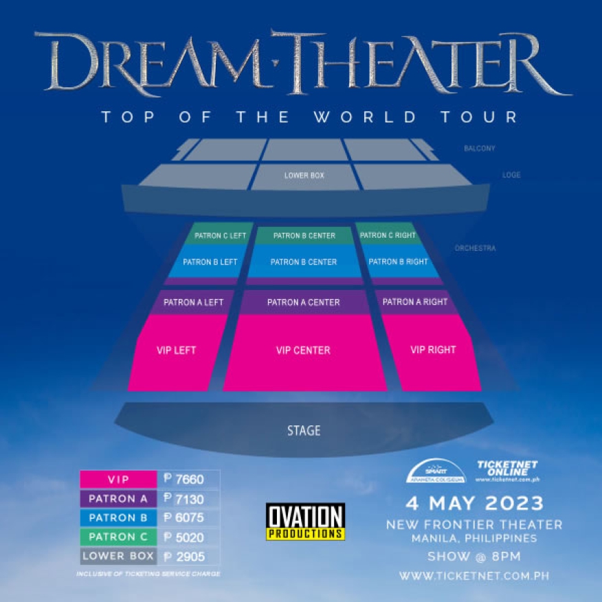 Dream Theater, the American progressive metal band, performed in Manila as part of their "Top of the World Tour" on May 4, 2023, at the New Frontier Theater. The concert was a part of their tour celebrating 20 years of "Scenes from a Memory".
