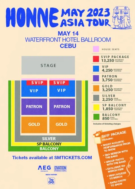 HONNE held a concert in Cebu as part of their 2023 Asia tour, which also included stops in Manila and Davao. The Cebu concert took place on May 14, 2023, at the Waterfront Hotel. It was one of three stops in the Philippines for the alt-pop duo, who were touring to support their album "LET'S JUST SAY THE WORLD ENDED A WEEK FROM NOW, WHAT WOULD YOU DO?"