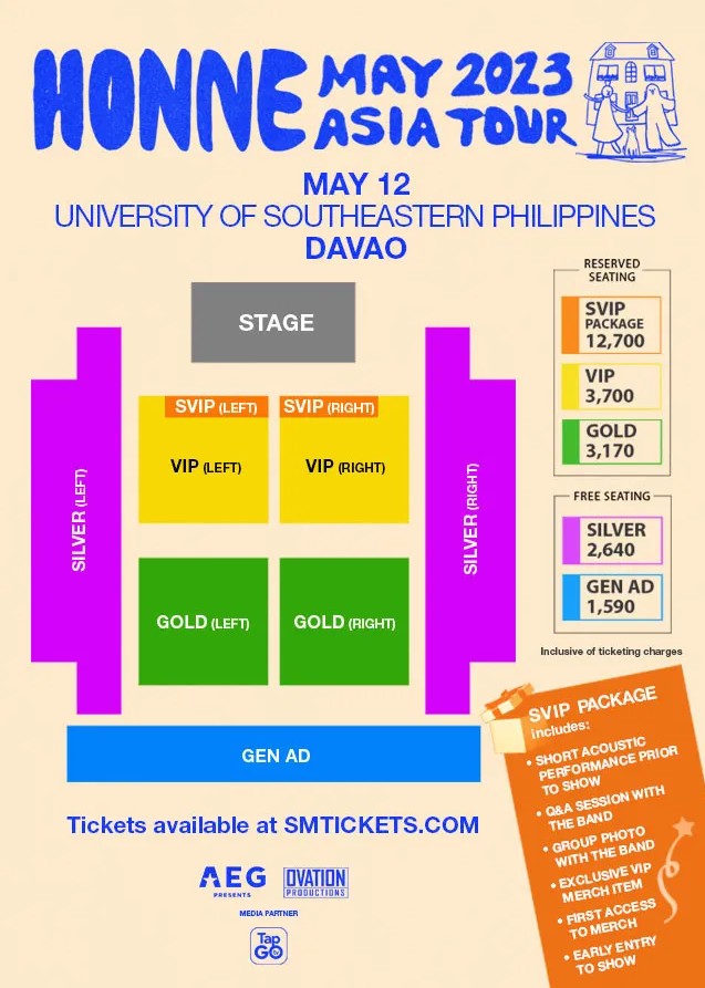HONNE's 2023 live performance in Davao was part of their Asia tour, which also included stops in Manila and Cebu, Philippines. They performed at the University of Southeastern Philippines (USEP) Gym on May 12, 2023. This was part of their return to the Philippines after a four-year absence. The Davao concert was promoted by AEG Presents Asia and Ovation Productions.