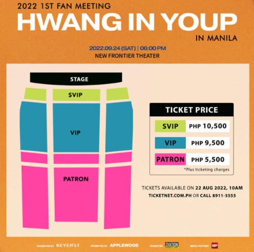 In 2022, Hwang In Youp held a fan meeting in Manila as part of his "In Love" fan meeting tour. The event took place on September 24, 2022, at the New Frontier Theater in Quezon City.