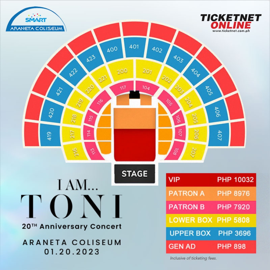"I Am Toni" was a concert celebrating Toni Gonzaga's 20th anniversary in show business, held on January 20, 2023, at the Smart Araneta Coliseum in Quezon City. The event was produced by Joed Serrano and tickets were available through Ticketnet.