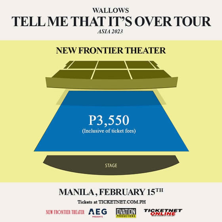 Wallows, the American alternative rock band, performed their "Tell Me That It's Over" tour in Manila on February 15, 2023, at the New Frontier Theater. This was the band's first time performing in the Philippines.