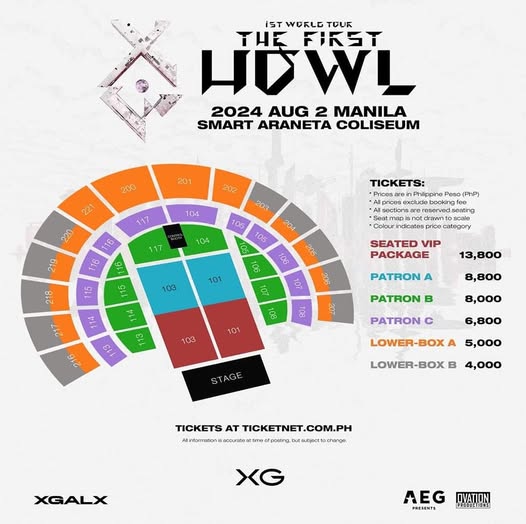 XG held their first-ever world tour concert, "The First HOWL," in Manila on August 2, 2024, at the Smart Araneta Coliseum. The 7-member group, consisting of JURIN, CHISA, JURIA, HINATA, HARVEY, MAYA, and COCONA, performed for Filipino fans, also known as ALPHAZ. The concert was a success, with fans eagerly anticipating the group's arrival and enjoying performances of their hit songs