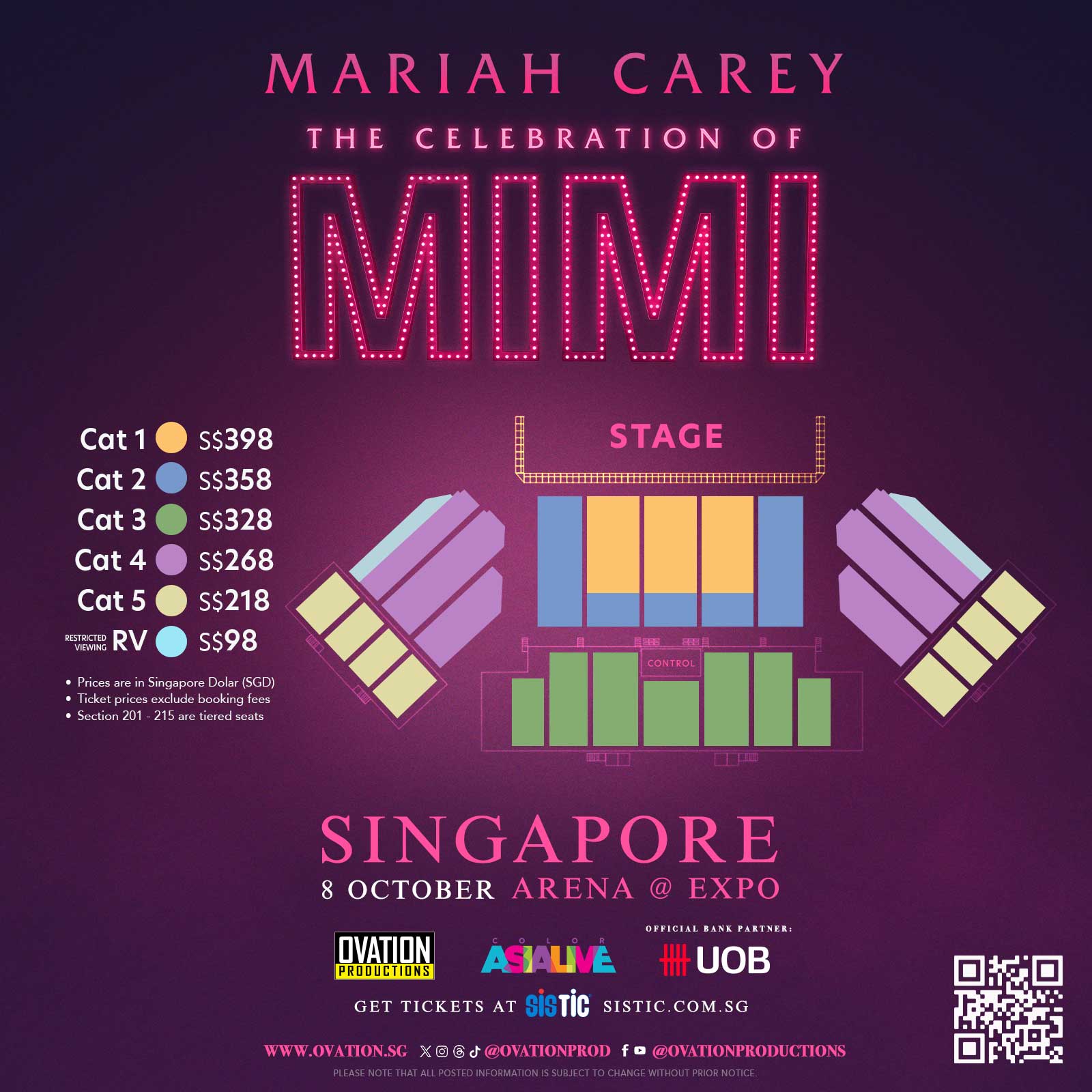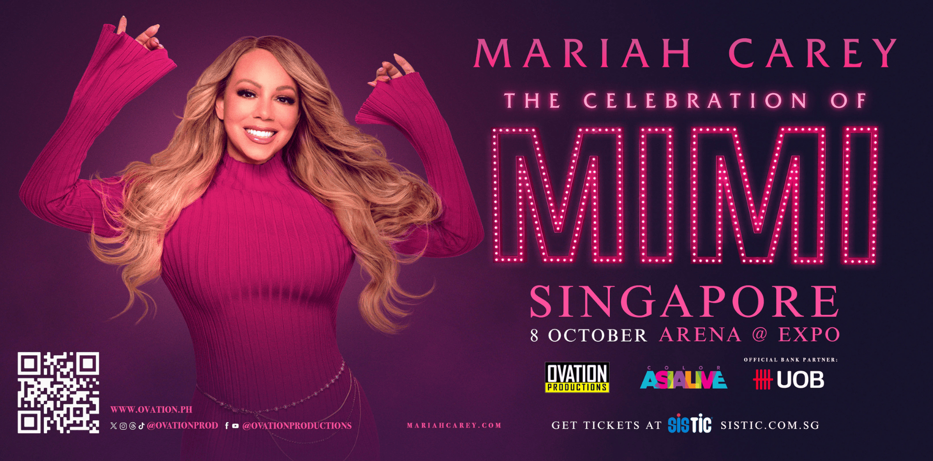 Ovation Productions is bringing Mariah Carey to Singapore for The Celebration of Mimi Tour at the ARENA @ EXPO on October 8!